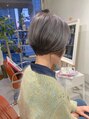 ミセスショートスタイルです。骨格補正カットなので後頭部にしっかり丸みのボリュームが出て頭の形をキレイに見せてくれます。カラーは白髪を活かしてマニキュアでグレイに染めています!幅広いミセスヘアに対応していますのでお任せください☆