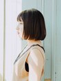 不動の人気のボブスタイル。可愛くなりすぎないよう毛先の質感は切りっぱなしな質感に!ストンと収めたいので毛量は軽めに。前髪は眉毛の位置でパツっと切り、束っぽくスタイリング出来るよう薄め取り空間をに作りました。【いわき】