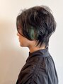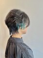 トレンドを取り入れつつ、自分の好きを大切に♪くせ毛を活かしたハンサム★ウルフショート。インナーカラーで鮮やかなグリーンをオン。ハイトーンにブリーチした部分は、次は何色にしようかな?と、遊び心も楽しみもたっぷり♪
