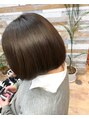 ダメージレスマグネット縮毛矯正、シャンプーブロー。酸性薬剤をメインにアルカリ剤を少々配合。髪の毛の状態に合わせたオーダーメイド薬剤でダメージレス。ボブでも丸みのある縮毛矯正。マグネットケアで手触りは極やわ。