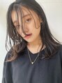 センターパートが大人っぽく見える人気のミディアム。耳にかからない長さが顔まわりを華やかに見せてくれておすすめです。カラーも艶が出てパサつかない地毛風のアッシュグレーで、冬のファッションにも合わせやすい。アレンジもしやすいデザインです。