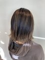 ワンレンボブベースにカットし、エアタッチでバレイヤージュをオン。ベースは6レベルのグレー系にブリーチ部分には、15レベルのグレージュを入れ、コントラストを効かせたスタイルにしました。