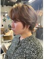 透明感のあるミルクティーベージュカラートップにボリュームを出す事で小顔効果を演出一味違うマッシュショートをしたい方挑戦してみてはどうですか?