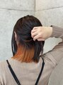 以前ブリーチした部分にオレンジカラーをオン。カットは切りっぱなし長めボブです。
