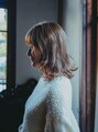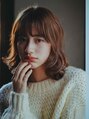 眉あたりでカールしたバングに透け感を出したおすすめスタイルです!伸ばし途中の方におすすめのミディアムスタイル。毛先を外ハネにして顔まわりや他の部分は緩く巻くのがポイント全体を内巻きにしても落ち着いた印象になるのでおすすめです![高崎/高崎駅]