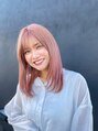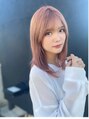 一度ブリーチしてしっかり透明感のあるピンクベージュに。毛先だけ大きめのコテで軽く巻いて、柔らかさを出します。