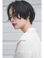 ハンサムではないレディースライクなシルエットのセンターパートショート。センシュアルでムード漂う気品が素敵なヘアデザインなので、ファッション感を格上げしてくれる事間違いなしのデザインです。