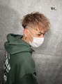 ツーブロック刈り上げフェードベージュ前下がり無造作マッシュ/ホットペッパービューティー