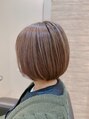 ブリーチ履歴を活かしたベージュ系カラーの丸みショートボブです。