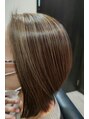フェイスフレーミングの部分はオンカラーで薄くベージュを入れて、かきあげると放射線状に筋が見えてカッコいい感じに☆長さは裾が外ハネできるように…(※ブリーチしてるのは前髪の部分のみです※)