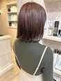 ボルドーピンクカラーに切りっぱなしスタイルでスタイリングがとっても簡単♪♪♪コテ巻き要らずの立体感(*^^*)ローライトカラーもプラスして、さらに動きも出しました(*´ω`*)秋冬スタイルのトレンドカラーお任せください(●´ω`●)