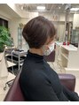 顔周りに厚みを残すことでネープの短さを強調しました。短い前髪との相性ばつぐんです。スッキリ、切った感が欲しい方や短い前髪が好きな方におすすめです。