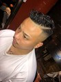 高めのスキンフェードですがハードパートの長い方がツーブロックになってるのでグラデーションの高さを調整しています!スパイラルパーマは前髪を上げて後ろに流れるようにかけて、メッシュはセットした時に存在感が出るように配置しているのがポイントです!