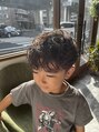 パーマはワンパネルに外、内、外の3本のロッドを使った波巻きの巻き方で当てています。トップは緩めのツイストスパイラルも混ぜてます。(パーマ料金に+\1650)