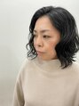 ミディアムヘアのパーマスタイル。エアウェーブでカールをしっかり出して、大人なパーマスタイル。前髪にも同じ感じのカール感で顔まわりも動きあって冬仕様に♪
