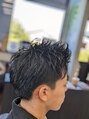 アップバンクにしたショートスタイルです。トップに束感を出して動きを出しています。