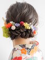 卒業式・卒園式にも◎袴の着付けとミディアムヘアセット♪人気のローシニオンのヘアアレンジにアーティフィシャルフラワーでより華やかに!仕上げに使用しているオリジナルのヘッドパーツ( @soieforhair )は、サロン店頭や WEB SHOP でも販売してます♪