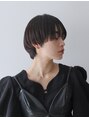 ナチュラルなこなれ感の秘訣は、暗色と、ミニマムなシルエットとバランスです。骨格に合わせてカットし、前髪は目ギリギリで丸みをつけたマッシュショートヘアです。メンズライクなファッションとの親和性が高くカジュアルコーデにも合います。