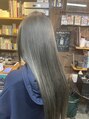 ダブルカラーのグレージュヘア。バリジョアの髪質改善もされているのでサラサラ、ツヤツヤです。
