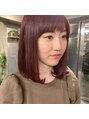 ブリーチ、ブリーチ履歴のないピンク系カラー*オリジナルのカラー配合でピンク感をしっかり出します。肩に当たる長さのカットは切りっぱなしスタイルを内巻きワンカールにしています。