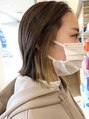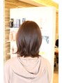 内側をブリーチして明るくしてから、全体にイルミナカラーのフォレスト(マット系)とディープシー(濃い青色)をミックスして塗布。全体をカーキブラウンに。ファイバープレックスでダメージレスなヘアカラー!