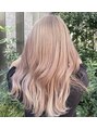 ハイトーンピンクベージュ×顔周りレイヤーウェーブロングヘア