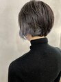 耳周りと前髪の内側をうっすらブリーチで脱色し、濃いめのパープルをのせました。ベースはあえて地毛の黒髪で、インナーカラーが映えるように。カットは後頭部の丸みが出るようにグラデーションを入れ、クセの動きが出やすくアレンジしてます。