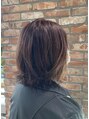 流行中のミディアムスタイル。カラーは柔らかなピンクベージュ。