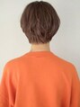 フラットめの少し前下がりのショートボブです。少し前下がりにする事で顔をシャープに見せる効果があります。耳掛けして2wayでお楽しみ頂ける飽きないスタイルになっています。