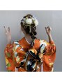 前日にカット、カラーをしてくれました!イヤリングカラーをし、全体的に明るく色を入れベージュ系色味でカラーしております♪セットは1つにくくり、ドライフラワーと金箔を使い、着付けの帯も可愛くリボンを入れております★ミ