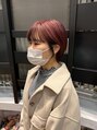 ケアブリーチで丁寧に明るくして、全体はつやっとピンクにしつつ、顔まわりにインナーでダークグレーで締め色を◎ピンクでも甘くなりすぎず周りと差をつけられます!襟足をスッキリしたショートスタイルでバックシルエットも素敵に!