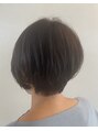 カットは襟足ギリギリのショートヘアにしました!シルエットが綺麗に見えるようにレイヤーを入れてくびれをつくるのがポイントです!カラーはイルミナカラーでオリーブグレージュにトーンダウンしました!くすませつつ透け感もでるカラーです!