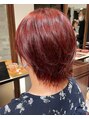 一度、ブリーチしてからカラーをしております。アヴェダカラーに塩基系のヘアカラーを混ぜて発色の良いツヤ感のあるカラーにしております。ぜひ、個性的なヘアカラーにしたい方はご相談下さい!!