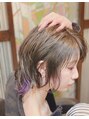 ナチュラルなインナーカラーで遊び心満載♪ベースカラーはダークブルージュ!インナーはブルーバイオレットでシックな色合いに♪メイクはワインレッドとイエローをチョイス♪マスカラはブルーを使用しインパクトがありながら可愛らしさを外さないカラーです♪