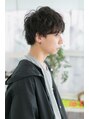 くしゃっとしたデジタルパーマでやんちゃな雰囲気に仕上げた無造作ショート。少年らしい優しい空気感のモテ髪で女子のハートをゲット。ワックスを馴染ませるだけの1分スタイリングもうれしい。サイドパートやツーブロックで動きをつけて個性的オシャレ感。