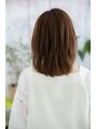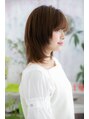 斜めバングで目元を印象つけたナチュラルボブディ。くせ毛風ワンカールでくるんとまとめてニュアンス感ある動きを演出。前下がりで小顔に見せます。耳かけでアシンメトリーにしても大人かわいい。ナチュラルボブやフェミニンボブからの伸ばしかけにオススメ。
