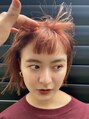 ワイド、オン眉ぱつっと前髪 ブリーチカラー オレンジ/ホットペッパービューティー