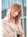 ブリーチでしっかり色を抜いた上に、コーラルピンクで透明感をしっかり残して。毛先を軽く外ハネに巻いてシンプルにかわいく。