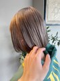 落ち着いたミルクティーベージュのショートスタイルです。色落ちしてくると綺麗なベージュになるので色落ちも楽しめるカラーです◎ショートスタイルはハイトーンがおすすめです◎
