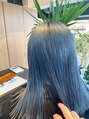 ハイトーンのペールブルーのスタイルです。ハイトーンはケアブリーチを使うことで艶のあるハイトーンスタイルになります◎こちらのヘアカラーは2回ブリーチが必要です。