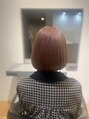 元々ブリーチ毛だったのでなるべくダメージをださないよう、ファイバープレっクスを使いブリーチをしました。ほのかにピンク味ベージュのカラーを入れることで透明感のあるツヤ髪に!