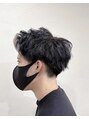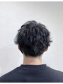 もともとハイトーンを続けている髪にカラーしています。全体を光が当たれば青光りするブルーブラックにして、顔まわりを残すことでフェイスフレーミングにしています!カットは短めの刈り上げマッシュで2way仕様です!!