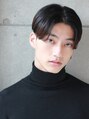 モードでシンプルなセンターパートスタイル。毛先は軽くワンカールパーマを施すことで毛流れとまとまりをプラス。タートルネックにも相性◎大人スタイルです。
