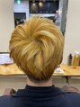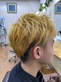 サイド、えり足3ミリのツーブロックスタイルです。カラーはお客様希望のあえてのブリーチのみ☆ワックスをもみ込むだけたの簡単スタイリングです♪【メンズカット/お台場】