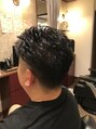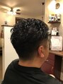 硬くて流れが出にくい、横がはねるお客様に丸8ミリでアイロンパーマをかけました。サイドは3ミリでツーブロックにしました。