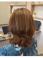 白髪ぼかしのハイライトが細かくたくさん入ってます。外ハネスタイルのくびれヘアで華やかに♪ボリューム出にくいトップも乾かし方を変えてふんわり(^ ^)