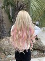 ★初めましてのお客様。自宅が美容室という事で、シッカリとブリーチした状態で来店。ホワイトとピンクとムラサキの3色でデザインしてます♪ピンクとムラサキのハイライトは本数少なめなので派手すぎずにこなれた感じに★