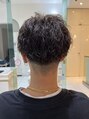 ツーブロックに刈り上げを繋げたスッキリツイスパスタイル。水に濡らしてスタイリング剤をつけてあげるだけでツイスト感とスパイラル感のあるカールが楽しめます!日によって分け目を変えてみたら、耳掛けにしてみたりする事だ少し印象を変えられます!