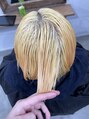 店内照明。編集加工無し。コンパクトなショートボブをカラーで遊びを出しました!色落ちもシルバー系なブロンドになります!
