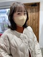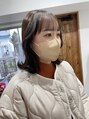 店内照明。編集加工無し。シースルーバングに合うよう顔まわりにレイヤーを加えたミディアムボブ!